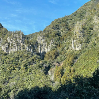 Da war z. B. ein weiterer Besuch im Onsen, den ich dann doch unten mal kurz in Bildern zeigen kann, weil ich eines dieser Bäder für mich ganz allein hatte. Und die wirklich atemberaubende Natur, die wir hier in den Bergen und Wäldern in der Präfektur Kii erleben können. Die Berge werden überall von weich anmutenden Wäldern überlagert, die sich wie eine Decke über die schroffen und zerklüfteten Hügel legen. Dazu dann die in den Gipfel hängenden Wolken. Unterhalb, und das ist wirklich ein echtes Schauspiel, begleitet uns seit Stunden ein Flussbett. Und wir fahren höher und höher und die Straßen sind wirklich ein Erlebnis. Nichts für Fahranfänger, aber ein echter Spaß, wenn man langsam und achtsam fährt.
